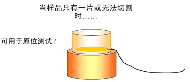 對(duì)于液體、凝膠和粉末樣品,測(cè)試時(shí)只需將 Hot Disk探頭簡(jiǎn)單地插到材料中或?qū)⒉牧贤康教筋^兩邊。對(duì)于液體測(cè)試,Hot Disk 特別提供液體樣品架。